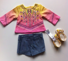 A fellow collector has sent me photos of the Yellow/Pink Tunic Top Outfit (rumored to be for Girl of the Year 2016, Lea Clark) on her dolls and some close up images of the details to share here. The outfit is modeled on Kanani & Truly Me #33 dolls.